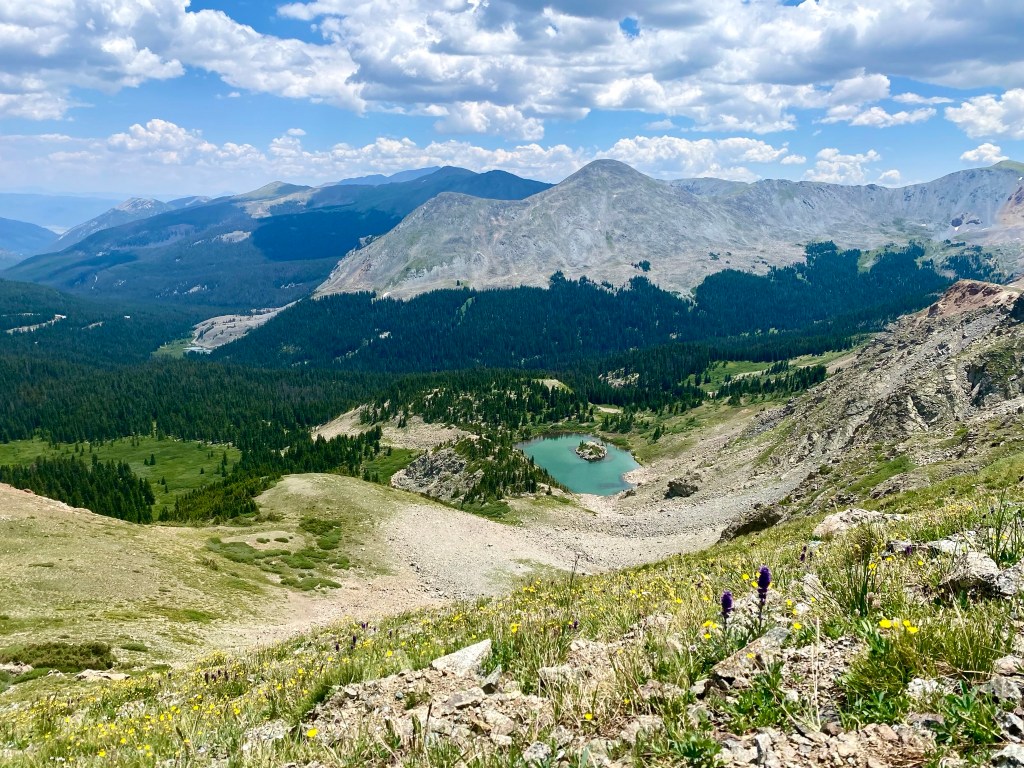 Start by following the trail to the right of the informational sign. The trail will direct you to an overlook. Don’t follow the regular tourists. Instead, stay on the trail to the right at the fork, following the CT/CDT markers and make your way up the switchbacks on the northwest side of the knob. After about 0.8 miles you’ll get to the top of this knob. Some regular tourists also climb to this knob, or “summit”, but after you’ve taken a couple photos from here, continue to the north. You’ll hike slightly downhill and across a flat shoulder, heading to the south. The views here are fantastic so enjoy them and then keep hiking. The trail will begin to climb and, if you are lucky, you’ll find more and more wildflowers tucked among the rocks. Don’t let the flowers completely distract you from the view of Lost Lake to your left. This lake, which can be reached from a trailhead below along County Road 306, has a small island in the middle of the lake, making an incredible scene. Of course our high vantage point adds to the dramatic views of the lake and its surroundings.