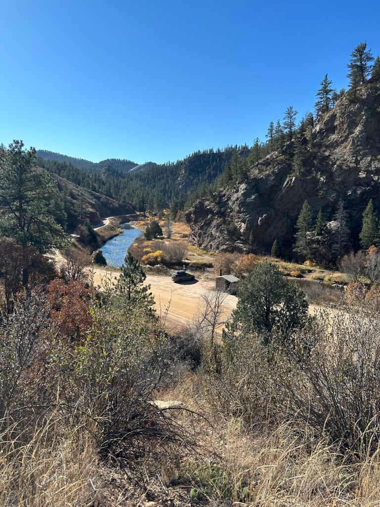 This hike is a delightful get-away from the city but just about 30 miles from C-470. Along the trail you’ll find wildflowers in the spring and summer, and views at any time. Because this is a lower-elevation hike, it can get really warm, particularly in the afternoon, so consider this hike in the spring or in the fall (we did it in late October and the temperatures were perfect!)